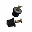 This expanding drain plug fits drains with a 5/8" drain hole. Lever arm expands rubber bung for a tight seal and allows quick removal when opened.
