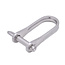 Stamped from AISI 304 Stainless Steel this shackle features a key pin for simple operation. The key acts as a lock and keeps the pin on the shackle Inside Width: 15mm Pin Size: M6 Inside Height: 40mm Break Load: 1650kg