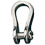 Stainless steel narrow opening shackle. Pin size 4.8 mm Length 19.0 mm Bow Width 10 mm Opening Width 5.0 mm B.L. 1300 kg Weight 5 g