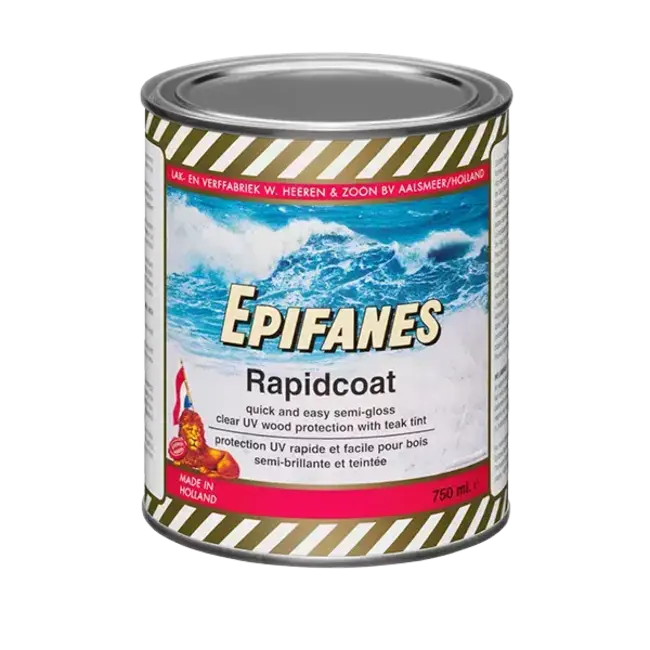 A UV resistant semi-gloss wood finish, based on modified alkyd/urethane resins. The answer for a quick and easy alternative to conventional varnish. For long-term protection and enhancement of all interior and exterior marine and household woods above the waterline. It bonds extremely well to teak and other oily woods, prevents discoloration and emphasizes the natural grain of the wood. Quick drying, excellent breathing properties, flexibility, maximum durability and longevity. To be used as quick drying, building and/or finishing system on all interior and exterior marine and household woods above the waterline. Also suited as quick drying primercoat prior to Epifanes Clear Varnish and Woodfinish Gloss (sand with 220). Maintenance of intact one and two-component varnish systems regardless of brand. A light brown, nutty coloration.
