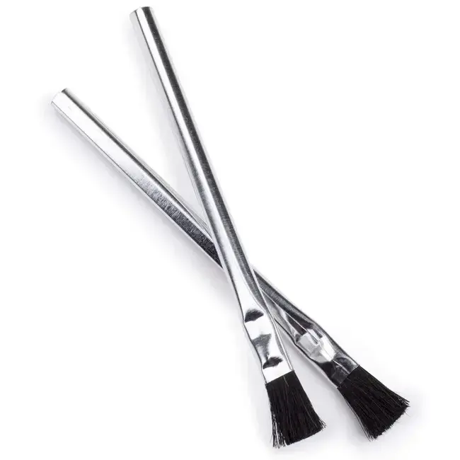 6" long handles of heavy grade tin plate. Horsehair bristles extend a full 3/4" from the handle.