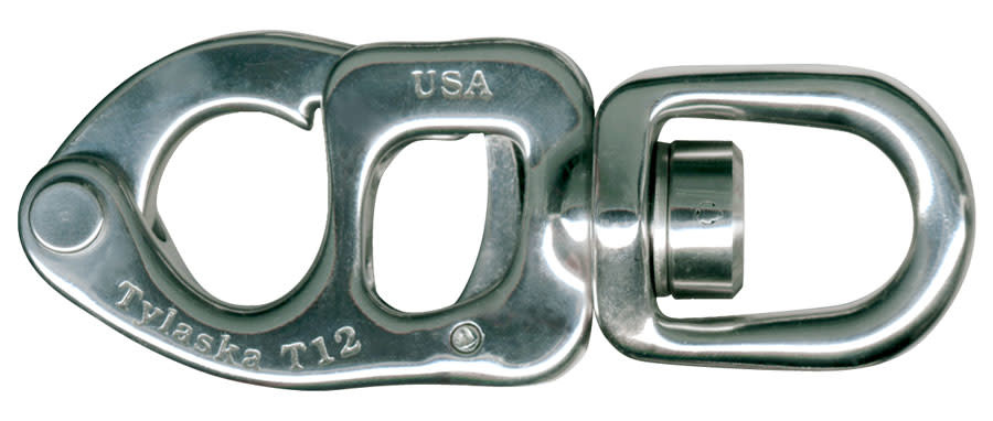 Tylaska T12 Snap Shackles are perfect for applications requiring high strength and low weight. They have a breaking strength of 12,000 lbs and weigh only 5.6 ounces in the standard bail configuration. Ideal for 30 to 45 foot boats.